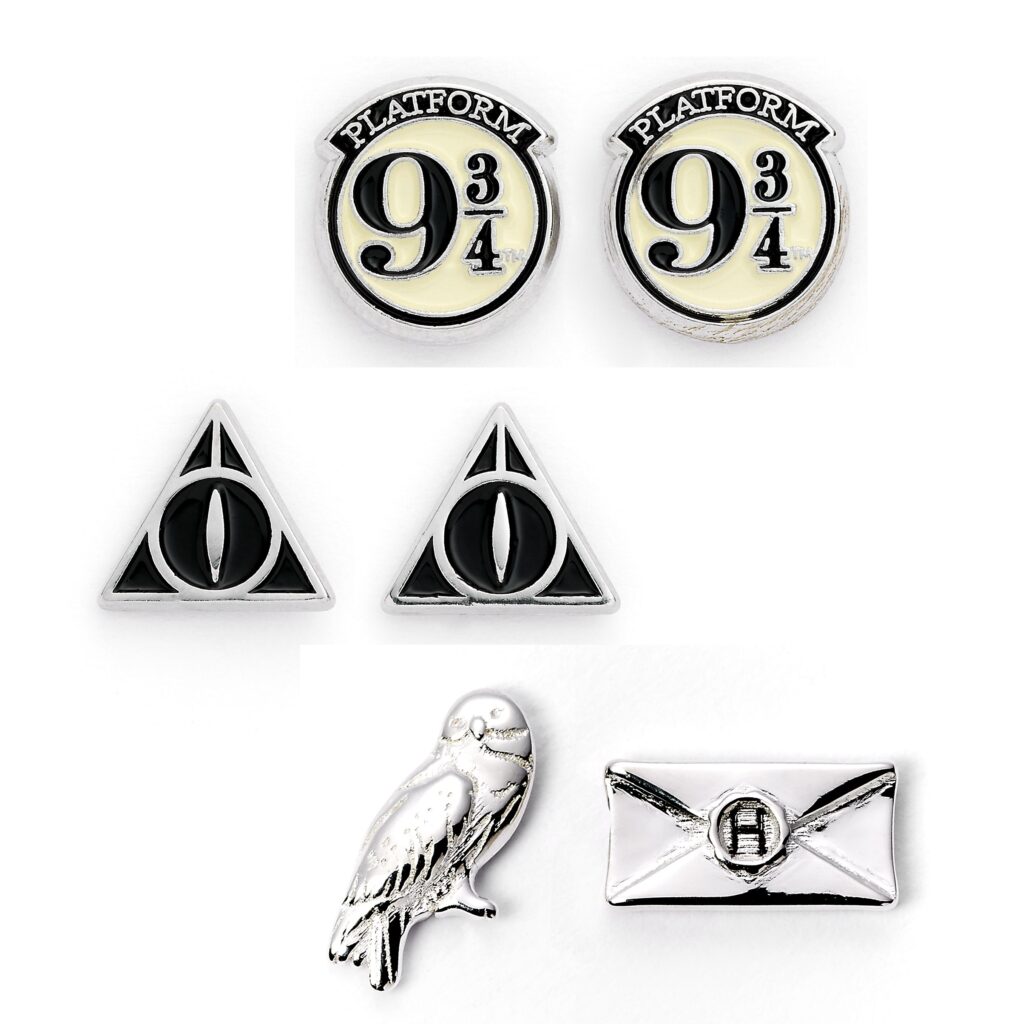 Harry Potter – Stud Earring Set including Platform 9 3/4, Hedwig & Letter, and the Deathly Hallows earrings