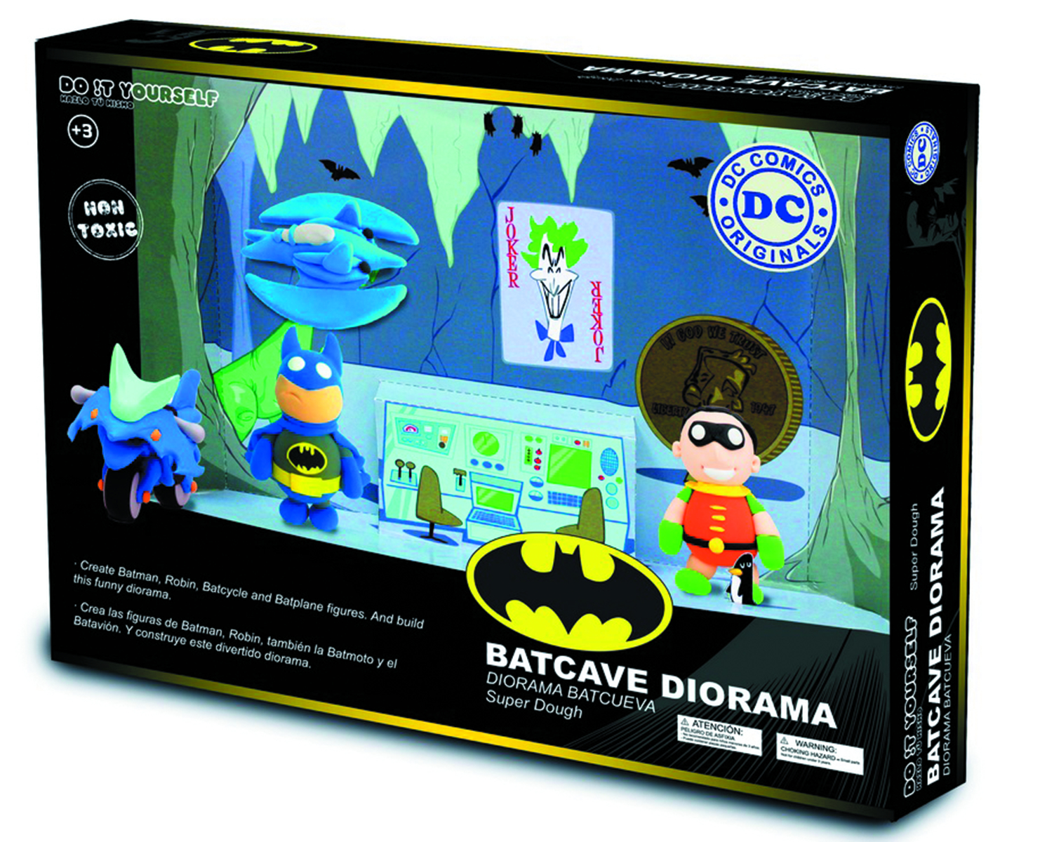Build your own Batcave with the Batman: Batcave Super Dough Do-It-Yourself Modeling Set! This fun kit comes with the modeling material, tools, and instructions necessary to build your own Batbike, Batplane, Batman, and Robin.