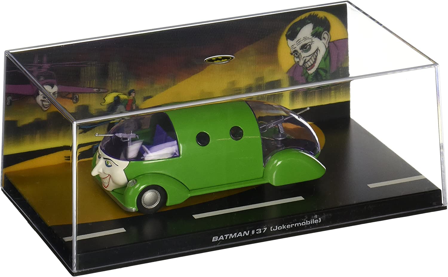 The joke’s on you with the Batman #37 Jokermobile! The Jokermobile was designed to help the Joker outsmart the Dark Knight and Gotham City Police Department. Discover new adventures with the Joker from the Batman Automobilia Collection. Since the Joker’s first appearance in Batman #1 (Spring1940), the Joker has been one of the great comic book characters of all time. The Jokermobile was a unique vehicle with a crazy appearance that perfectly suited the era of Clown Prince of Crime. This Jokemobile comes with a signal spotlight, forward-facing machine gun, loudspeaker behind the smile on the vehicle and bulletproof windscreen.
