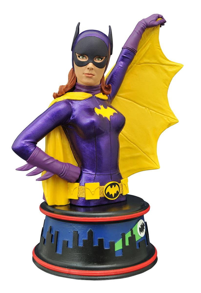 Move over boys – there’s a new Bat-heroine in town! Yvonne Craig’s Batgirl took Gotham City by storm in the third season of the Batman Classic TV Series, and she also turned gender conventions on their ear! A smart, stylish crime-fighter, Barbara Gordon was an equal to Batman and Robin, and saved their bacon on more than one occasion. This approximately 6-inch resin bust depicts Yvonne Craig as Batgirl, in her iconic purple outfit, atop a base inspired by the show’s animated opening. Packaged with a certificate of authenticity in a full-color box, this bust is limited to 3,000 pieces. Designed by Barry Bradfield. Sculpted by Jean St. Jean!