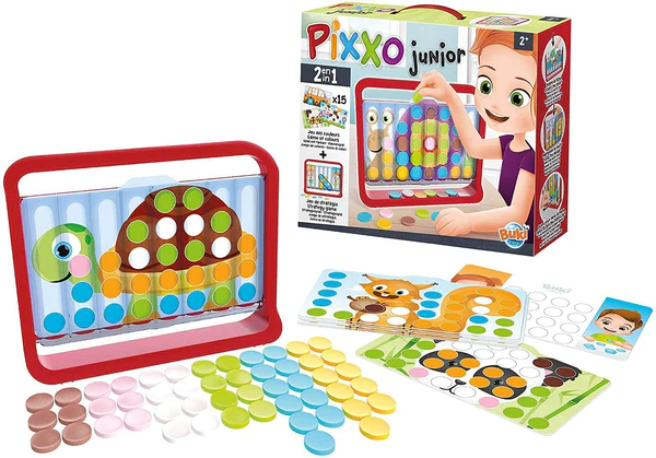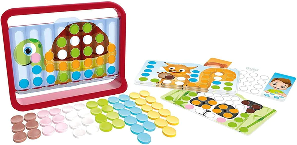 Includes: 15 models to reproduce, 1 game grid, 50 tokens of 6 different colors, instruction sheet with color illustrations