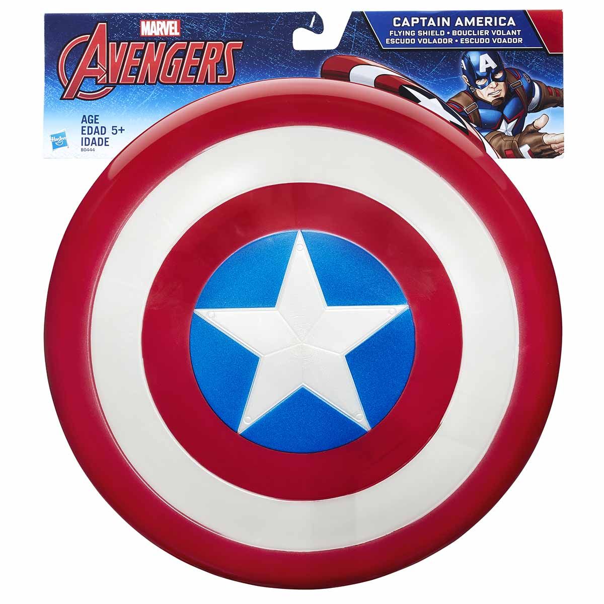 Take down the bad guys. Boys and girls ages 5 and up can imagine battling the bad guys when they throw their flying shield just like captain america. Marvel comics inspired. This captain america flying shield toy features classic red; white; and blue design and deco. Gear up as captain america. Kids can really feel like their favorite super hero by pretending to gear up with this marvel avengers captain america flying shield toy.