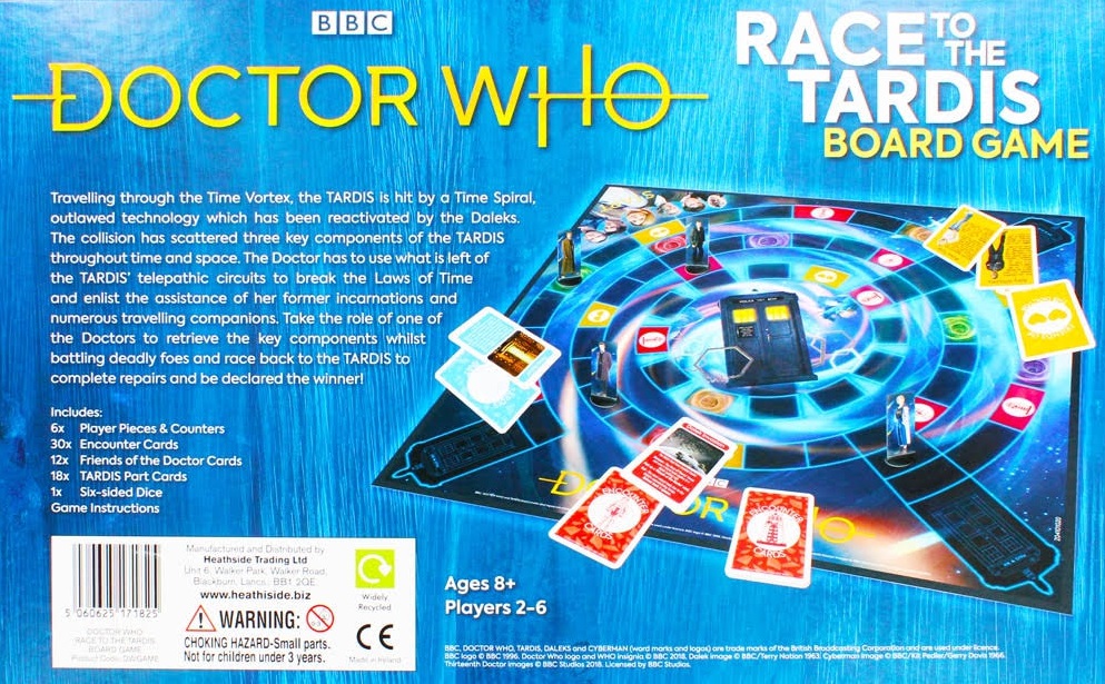 Players take control of one of 6 recent incarnations of the Doctor, moving around the time vortex, in an attempt to collect the 3 missing TARDIS components. Along the way players will encounter some of the Doctors’ companions and some well known enemies. Players: 2-6