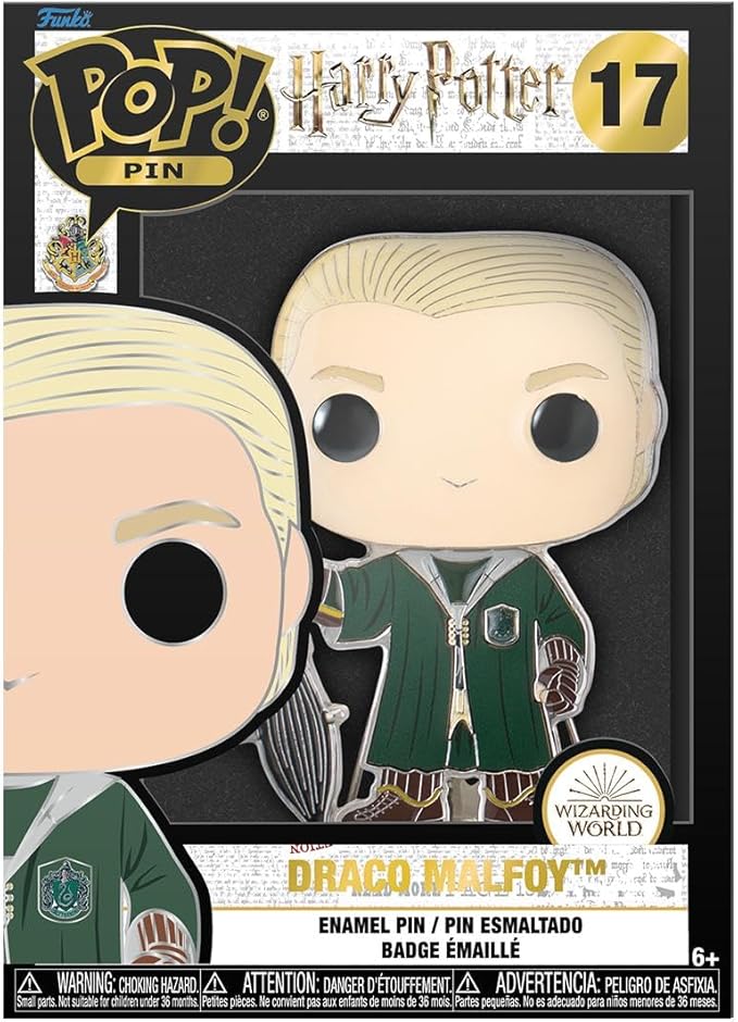 From the house of Slytherin, Draco Malfoy is looking to land in your Harry Potter collection as a Loungefly Pop, Pin Pin features shiny silver-tone hardware and a built-in pin stand; enamel pin measures approximately 4 inches tall