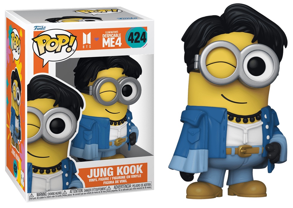 Score front row seats with Pop! Jung Kook as a Minion! This member of K-pop sensation BTS is here to take the stage in your Pop! Rocks collection! Reunite him with the rest of the group in your music set as he rocks this new look inspired by Despicable Me 4. Vinyl figure is approximately 4.4-inches tall.