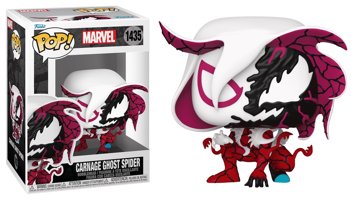 Unleash mayhem with Pop! Carnage Ghost Spider! This symbiote has taken control of your favorite heroes, and it’s looking to expand its reach to your Marvel Comics collection. Complete your lineup of Comic Characters when you make Pop! Carnage Ghost Spider the next addition to your Absolute Carnage set! Vinyl bobblehead is approximately 3.05-inches tall.