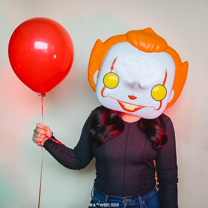 Funko Pop Style IT mask The dimensions of the mask are approximately 37 cm x 41 cm.