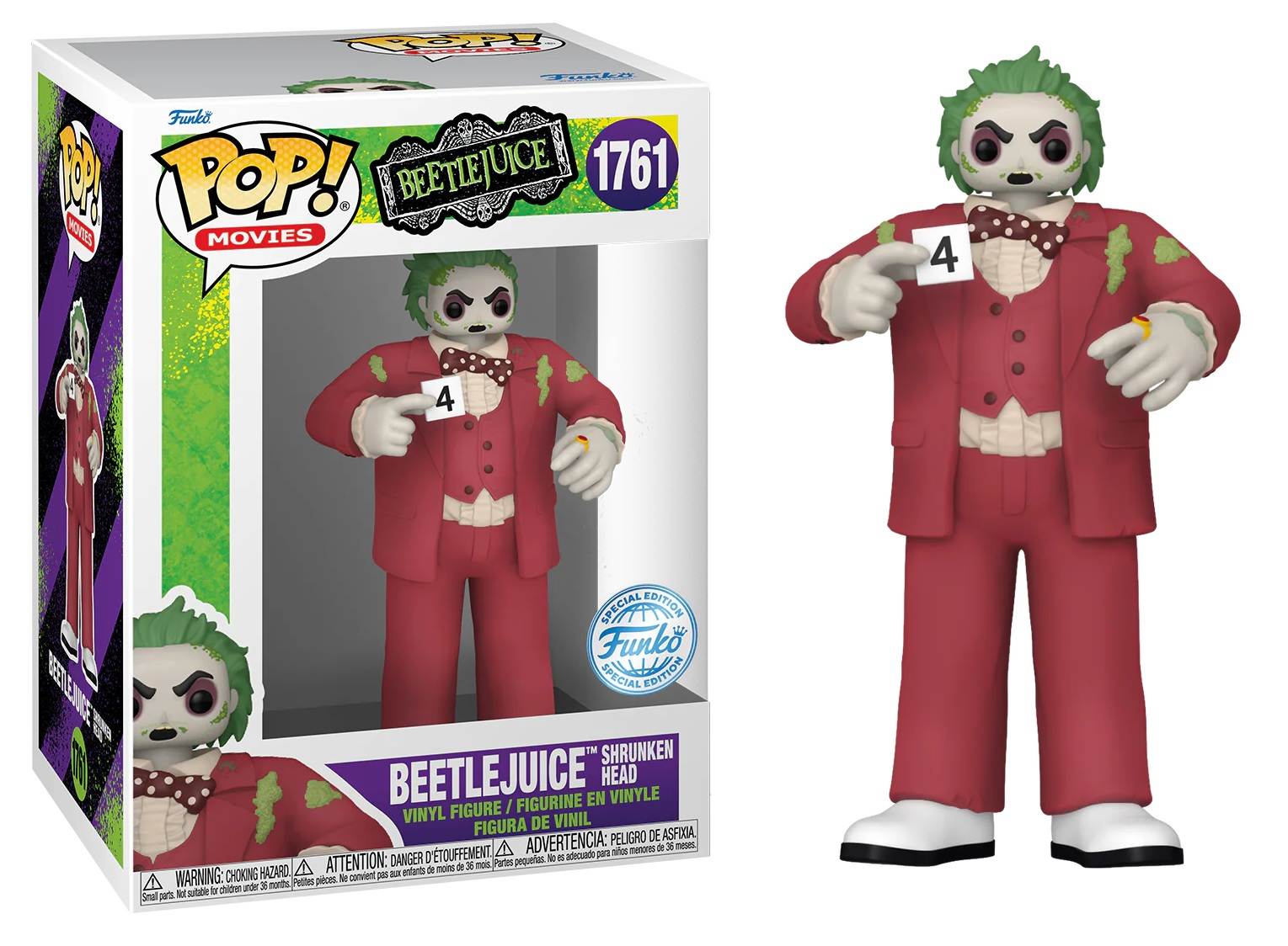 Take a name tag! Pop! Beetlejuiceâ„¢ Shrunken Head is here to join you in the waiting room! Say his name three times to summon this exclusive ghost to your Beetlejuice â„¢ collection! Vinyl figure is approximately 2.4-inches tall.