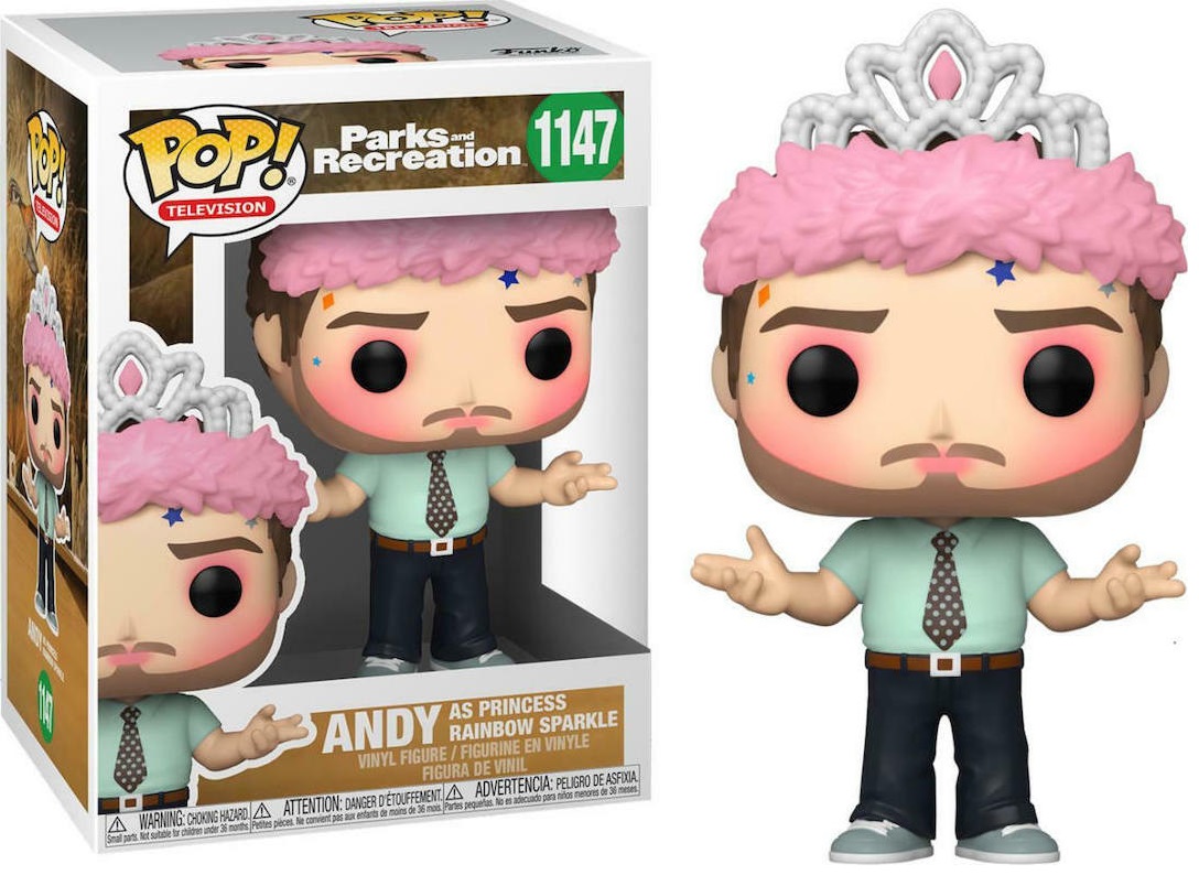 From Parks and Recreation it’s Andy as Princess Rainbow Sparkle as a stylized POP vinyl from Funko!