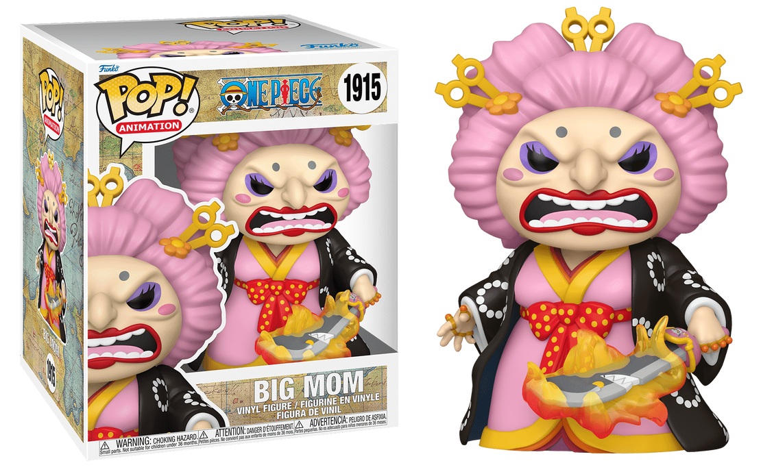 Set sail with Charlotte Linlin, the terrifying captain of the Big Mom Pirates! Expand your One Piece collection by adding this Super Pop! Big Mom (Kimono) to your scurvy crew! Vinyl figure is approximately 6.75 in (17.1 cm) tall.