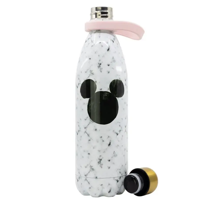 This durable insulated bottle with silicone handle on the cap making it easy to carry the bottle, is decorated with original Mickey Logo based on the most famous Disney designs.