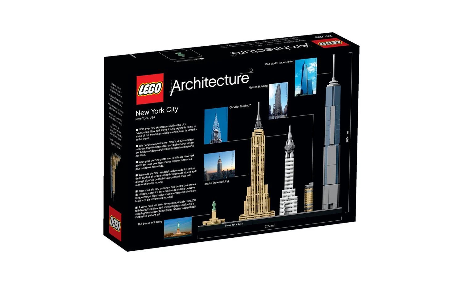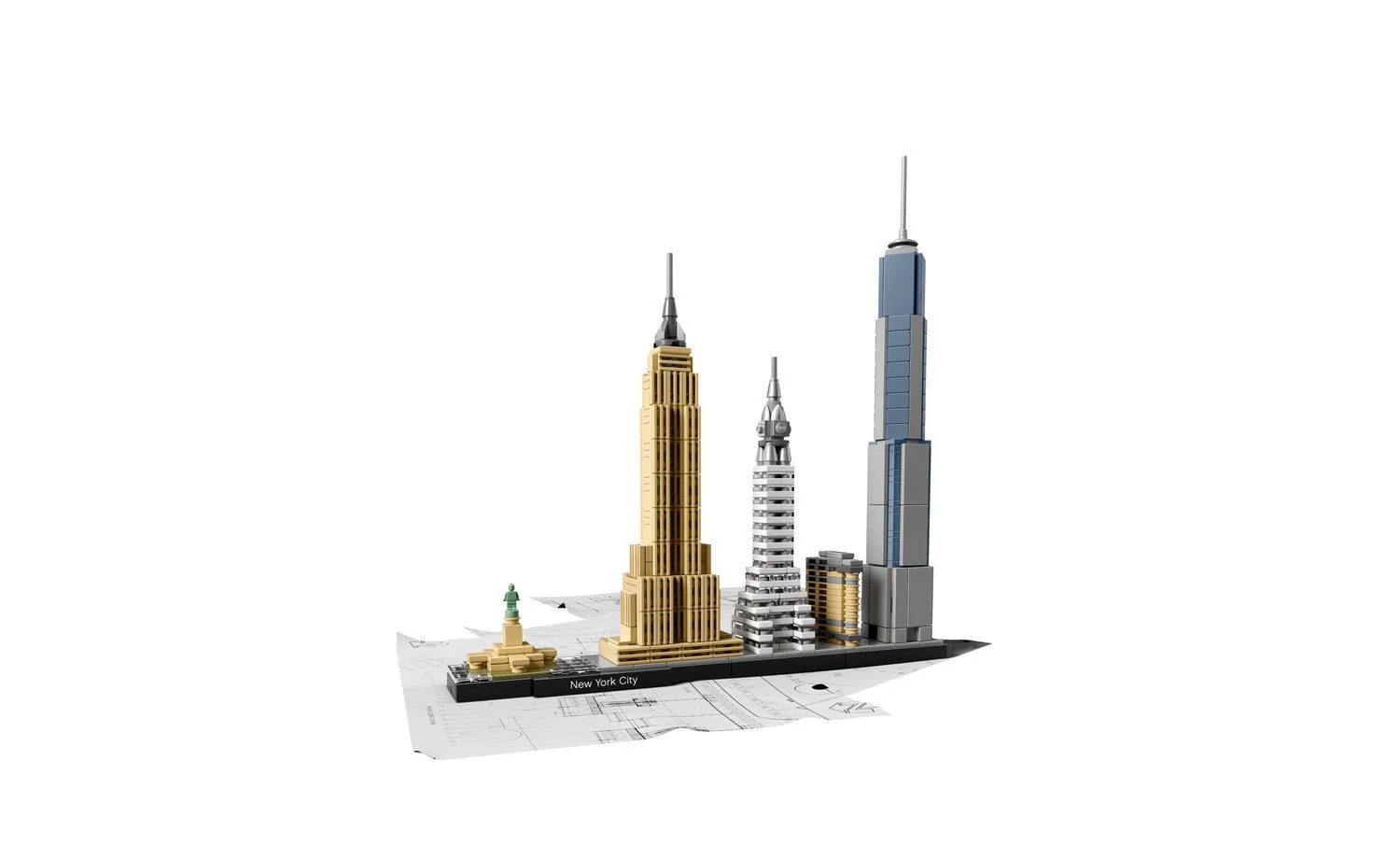 The LEGO Architecture Skyline Collection offers models suitable for display in the home and office, and has been developed for all with an interest in travel, architectural culture, history and design. Each set is scaled to give an accurate representation of the comparative size of each structure, with true-to-life color depiction. This set features the Flatiron Building, Chrysler Building™, Empire State Building, One World Trade Center and the Statue of Liberty, and is finished with a decorative “New York City” nameplate.