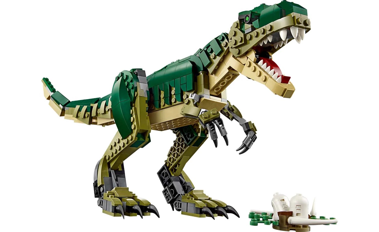 Boys and girls aged 9+ can travel back in time to play out amazing action with this T. rex (31151) dinosaur toy. The Tyrannosaurus rex toy is highly posable, so kids can move its head, feet, tail, jaw, legs, arms, and even toes and heels, into different poses. The T. rex toy also comes with a nest containing 2 small dinosaur egg elements and together they make an impressive display on a shelf or bedside table.