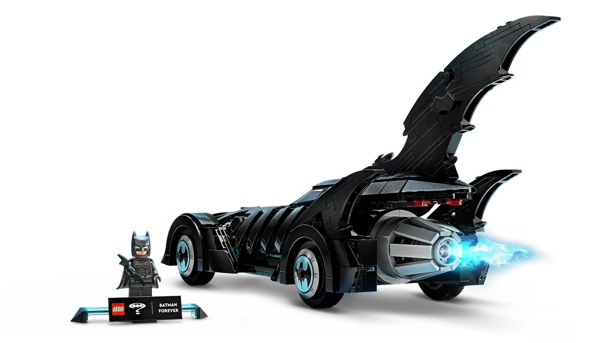This authentic recreation of the iconic car from the Batman Forever film features a moulded windscreen, moving wheels, decorations and a cockpit that opens to reveal a detailed interior. The vehicle also come with a Batman minifigure with its own special stand. For added digital fun, builders can zoom in, rotate models in 3D and track their progress using the intuitive LEGO Builder app. Contains 909 pieces.