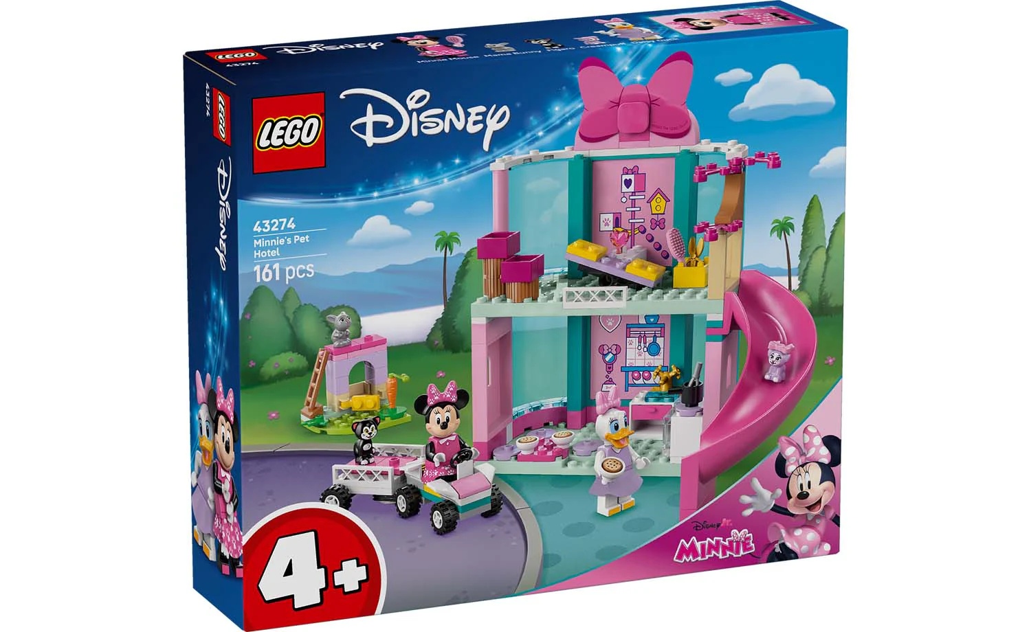 In the box – This LEGO® ǀ Disney building set has a modular pet hotel with a slide, play kitchen and bunny hutch, plus a car, trailer, 2 LEGO ǀ Disney minifigures and 3 LEGO ǀ Disney pet characters