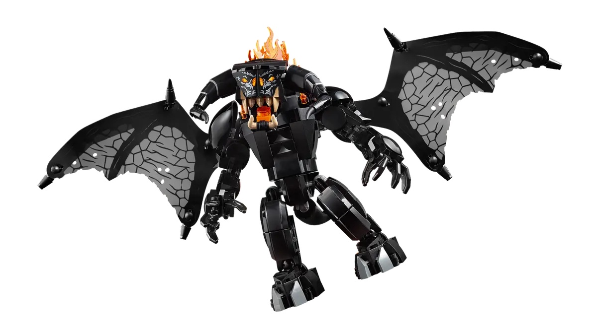 Bearing a plaque with the words ‘You Shall Not Pass’, the model depicts Gandalf the Grey™ in a fearless stance and the Balrog with its mighty wings unfurled against a blazing wall of flames. Both characters are detachable and the Gandalf minifigure has a staff and sword, while the Balrog figure wields a fiery whip and features posable limbs and wings for dynamic display.