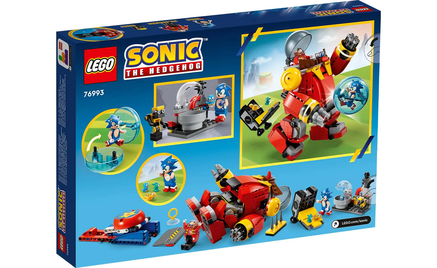 Kids team up with Sonic to save the day with this LEGO® Sonic the Hedgehog™ Sonic vs. Dr. Eggman’s Death Egg Robot (76993) toy set for ages 8+. Sonic’s archenemy Dr. Eggman and his minion, Cubot, have captured animals to power up their inventions. Kids can launch Sonic’s speed sphere to defeat Dr. Eggman before exploring the research station to gather intel ready for their next encounter. Fast action play Kids can use the speed sphere and launcher to navigate the ramp and spikes. The Death Egg Robot has a removable capsule that contains the animals Dr. Eggman is using to power it. These can be pushed out and rescued when Sonic scores a direct hit on Dr. Eggman using the speed sphere. Multiple ways to play Fast action fun meets creative play with LEGO Sonic the Hedgehog™ toy playsets. Fans of the Blue Blur will love creating scenes inspired by favorite Sonic adventures. When it’s time for a change of pace, kids can enjoy imaginative play caring for Sonic’s animal friends. Action play for young Sonic fans – Inspire kids to defeat Dr. Eggman with this LEGO® Sonic the Hedgehog™ Sonic vs. Dr. Eggman’s Death Egg Robot (76993) toy playset for kids aged 8 and up 6 characters and accessories – The set comes with 6 characters, Sonic’s speed sphere and launcher, plus lots of accessories for creative play A world of play – Kids can enjoy fast action play as they battle Dr. Eggman in his mech. Then they can create their own imaginative stories as they care for Sonic’s animal friends A gift for Sonic fans and gamers – This LEGO® Sonic the Hedgehog™ building set makes a fun birthday, holiday or any-other-day gift for kids aged 8 and up who love fun characters and imaginative play Measurements – The mech toy measures over 6 in. (15 cm) high, 5 in. (13 cm) wide and 3.5 in. (9 cm) deep Intuitive instructions – The LEGO® Builder app guides your child on an intuitive building adventure with tools to zoom in and rotate models in 3D, save sets and track progress Creative play with Sonic – Fast action fun meets imaginative play with LEGO® Sonic the Hedgehog™ building sets A quality product – All LEGO® components meet strict industry standards to ensure they are consistent, compatible and easy to build with: it’s been that way since 1958 Safety first – LEGO® bricks and pieces are dropped, heated, crushed, twisted and analyzed to make sure they meet stringent global safety standards