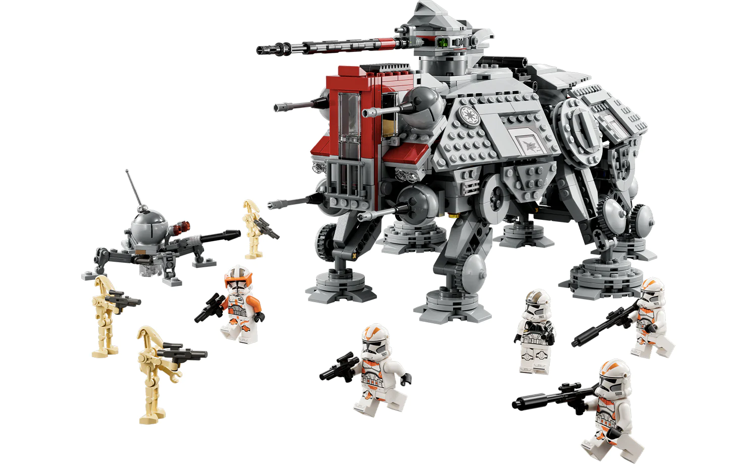 A great gift idea for Star Wars: Revenge of the Sith fans aged 9 and over, this building toy features posable legs, a 360-degree-rotating elevating heavy blaster cannon with 2 stud shooters, a detachable minifigure cockpit and 2 detailed cabins with space for up to 7 LEGO minifigures in total. Each of the cabins opens for easy play and an extendable handle makes it simple to lift and move the AT-TE.