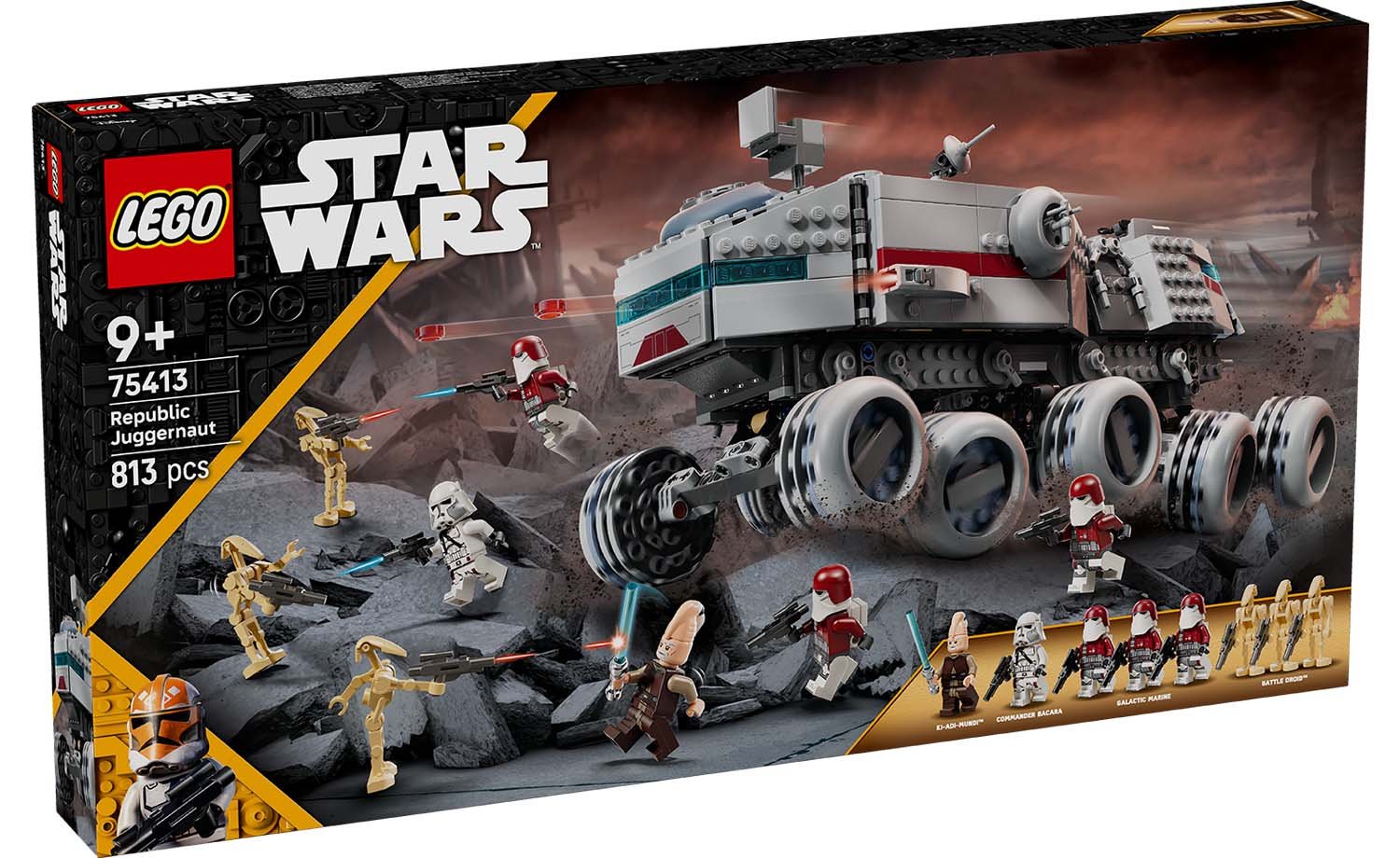 Let kids lead their own heroic Star Wars: The Clone Wars™ battle missions with the Republic Juggernaut buildable transport vehicle toy (75413).