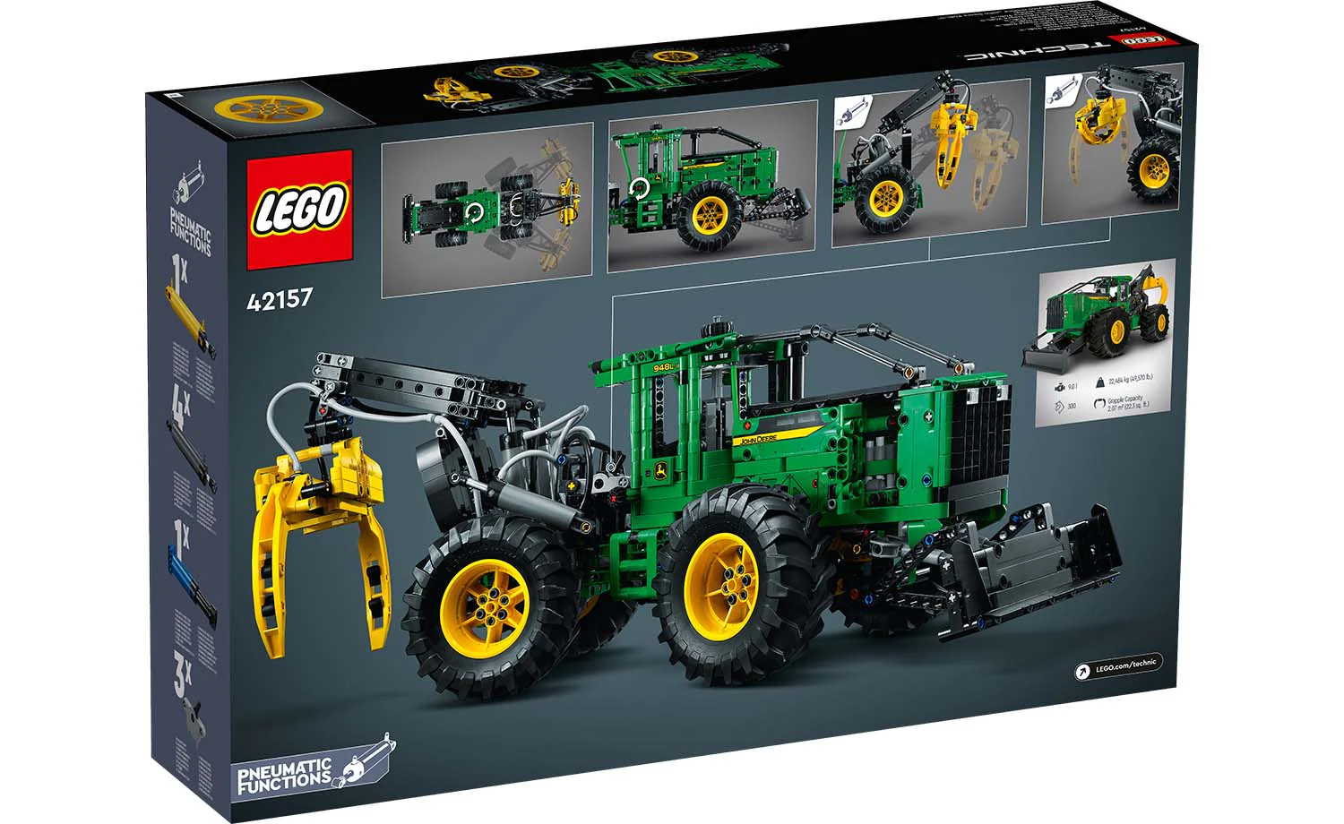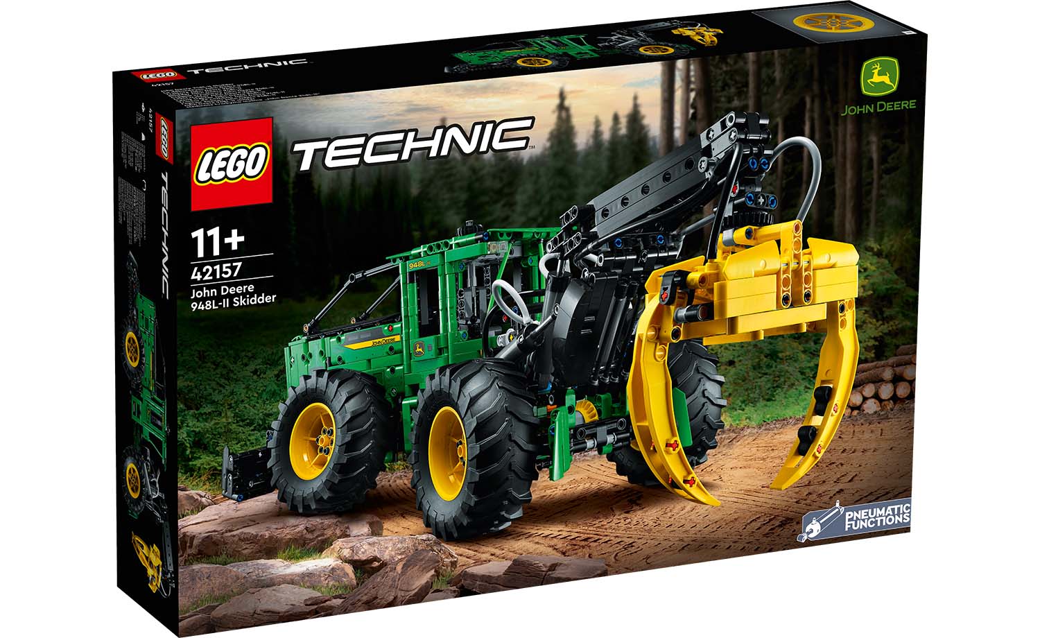 Kids aged 11+ with a passion for engineering and agriculture will love exploring all the features packed into this LEGO® Technic John Deere 948L-II Skidder building kit. Authentic functions include steering, 4-wheel drive and a working engine. There’s also a range of pneumatic functions – just like on the real skidder – that operate the claw with its 3 different actions, the blade and the rotating seat. Begin a building adventure Kids can enjoy an easy and intuitive building experience with the LEGO Builder app. Here they can zoom in and rotate models in 3D, save sets and track their progress. Explore the world of engineering LEGO Technic buildable toys feature realistic movement and mechanisms that introduce LEGO builders to the universe of engineering in an approachable and realistic way. A build for John Deere fans – Kids aged 11+ can build and explore a replica version of the manufacturer’s mighty machine with this LEGO® Technic™ John Deere 948L-II Skidder (42157) model toy set Pneumatic functions – Kids can explore what this machine can do using the pneumatic features to operate the claw which has 3 different actions. A rotating seat adds extra realism Mechanical functions – This build comes with features inspired by the real John Deere 948L-II Skidder, including steering, 4-wheel drive and a moving engine A building kit gift for kids aged 11+ – This LEGO® Technic™ John Deere 948L-II Skidder buildable toy model makes a gift idea for kids who love logging toys and mighty machines Measurements – This LEGO® Technic™ building set measures over 8 in. (21 cm) high, 21 in. (53 cm) long and 7.5 in. (19 cm) wide A helping hand – Discover intuitive instructions in the LEGO® Builder app, where builders can zoom in and rotate models in 3D, track their progress and save sets as they develop new skills An introduction to engineering – LEGO® Technic™ buildable model sets feature realistic movement and mechanisms that introduce young LEGO builders to the universe of engineering High quality – LEGO® Technic™ components meet rigorous industry standards to ensure they are consistent, compatible and connect reliably every time Safety first – LEGO® Technic™ components are dropped, heated, crushed, twisted and analyzed to make sure they meet strict global safety standards