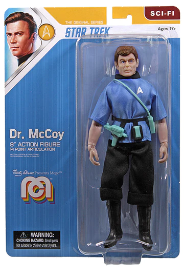 This highly articulated edition of Dr. McCoy stands approximately 20 cm tall and comes complete with fabric clothing and accessories.