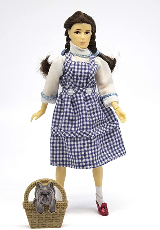 Dorothy lands in the magical place known as Oz after a tornado spirits her from her home in Kansas. In her search for a way to return home, Dorothy befriends others looking to meet the reclusive Wizard to help them with their troubles. This Mego is wearing her iconic ruby slippers, plaid dress, styled pigtails, and, of course, carrying a basket with Toto.
