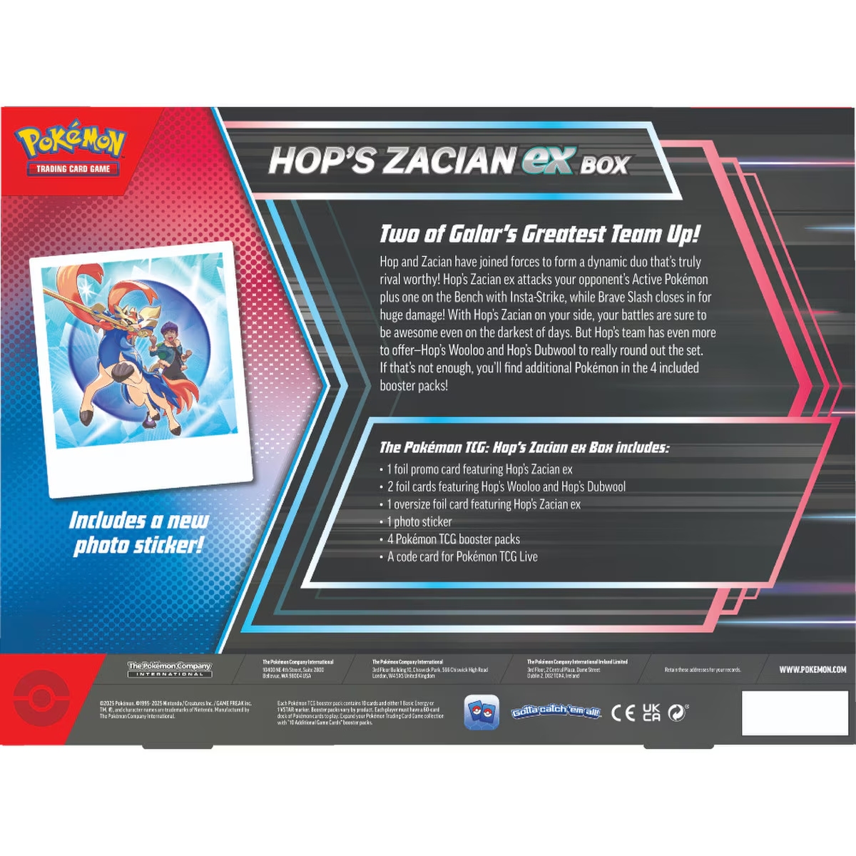 The Pokémon TCG: Hop’s Zacian ex Box includes: