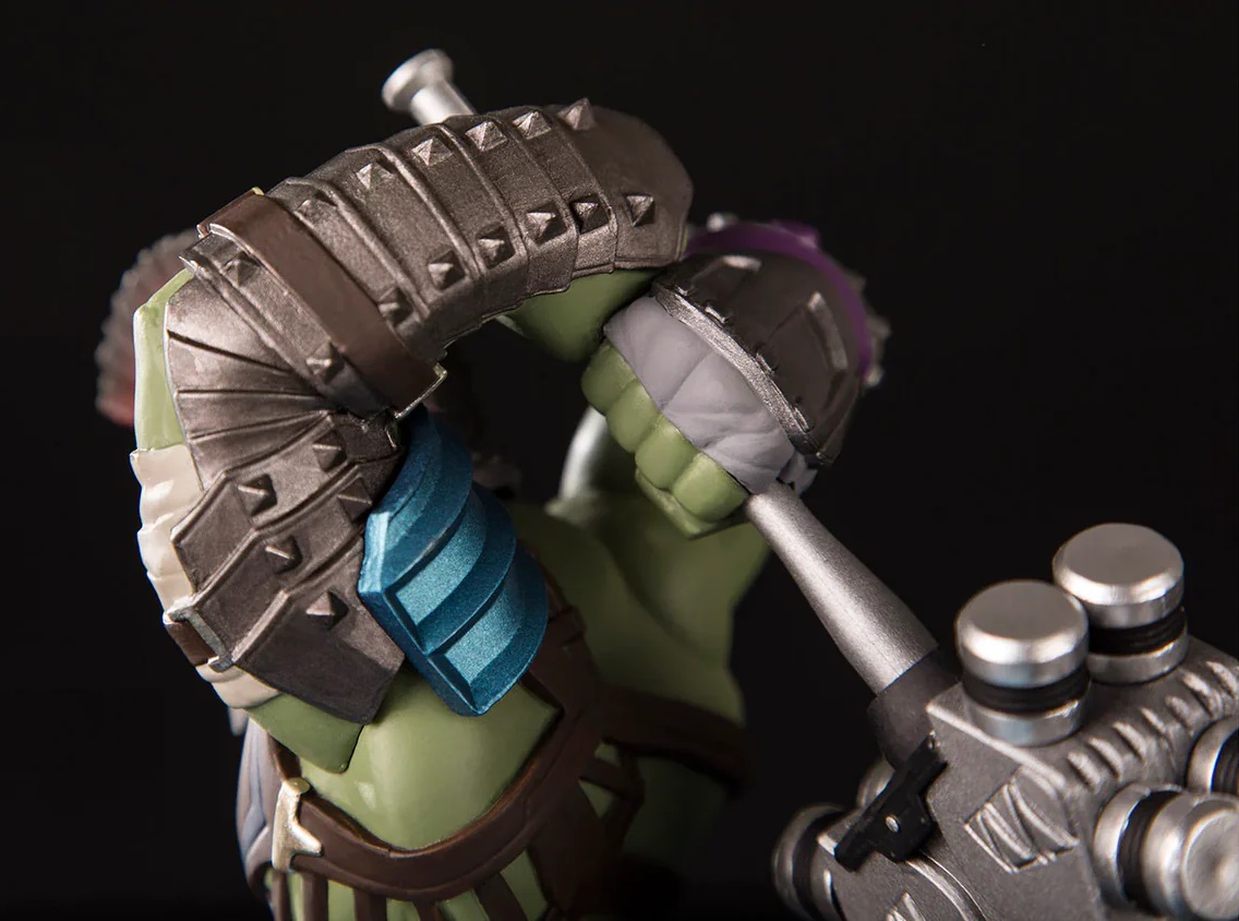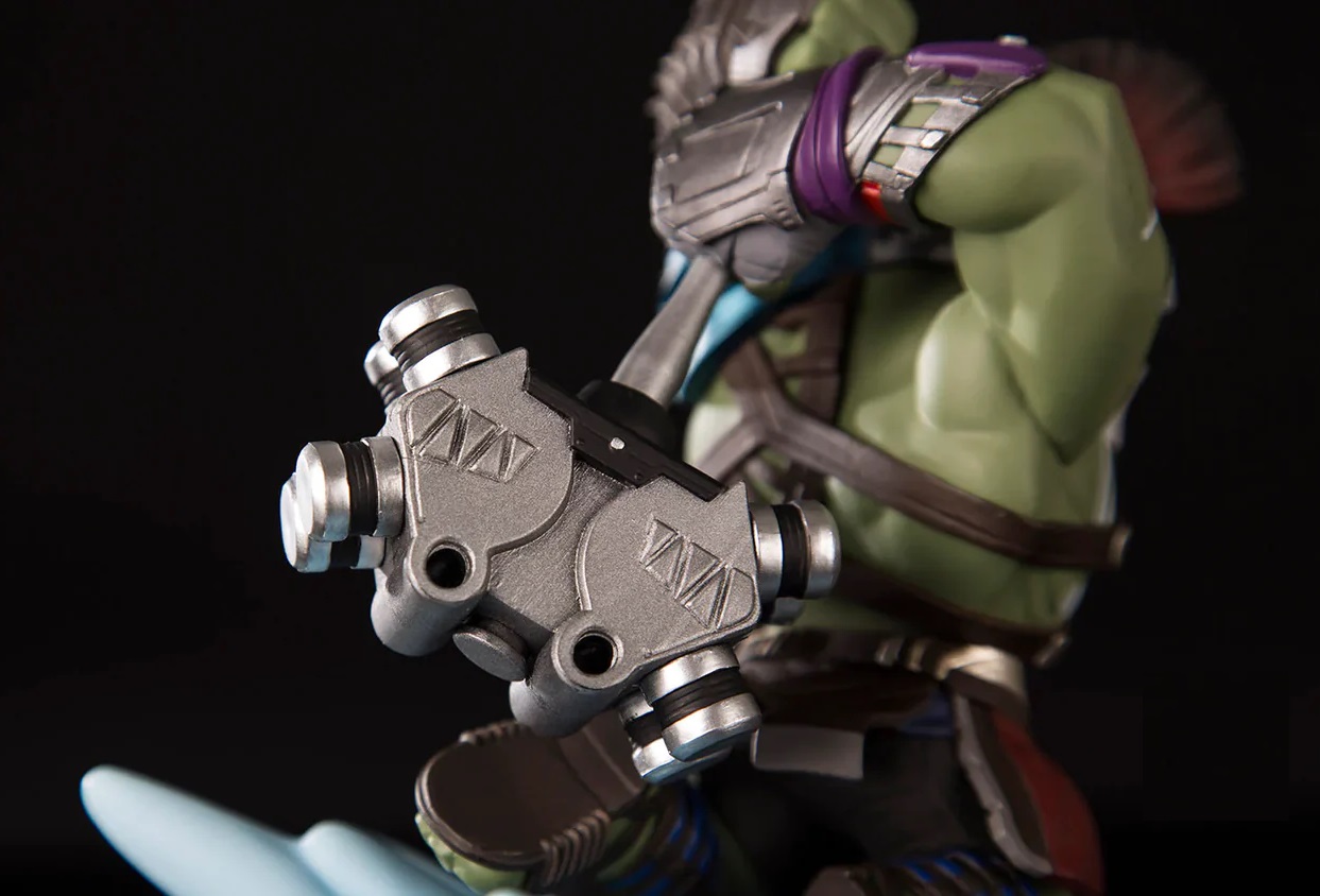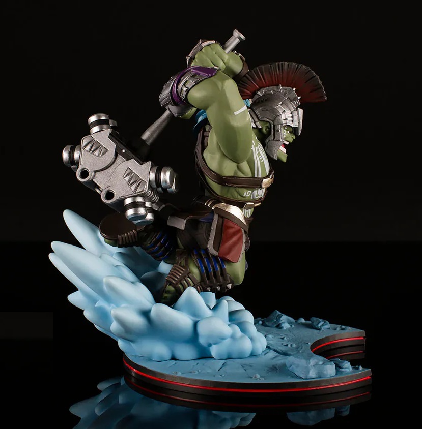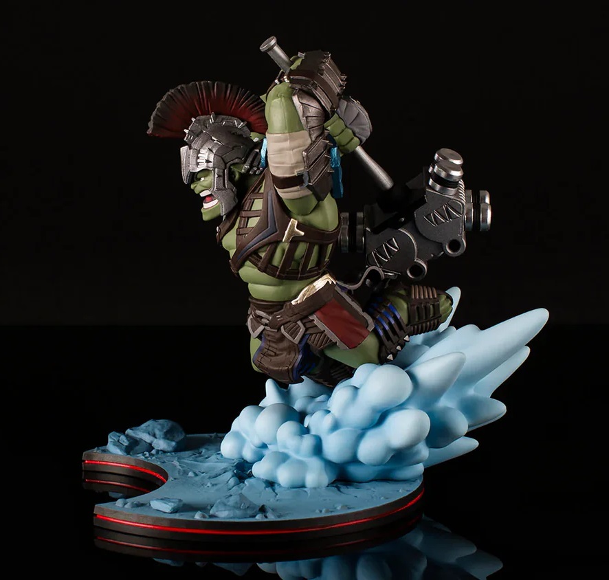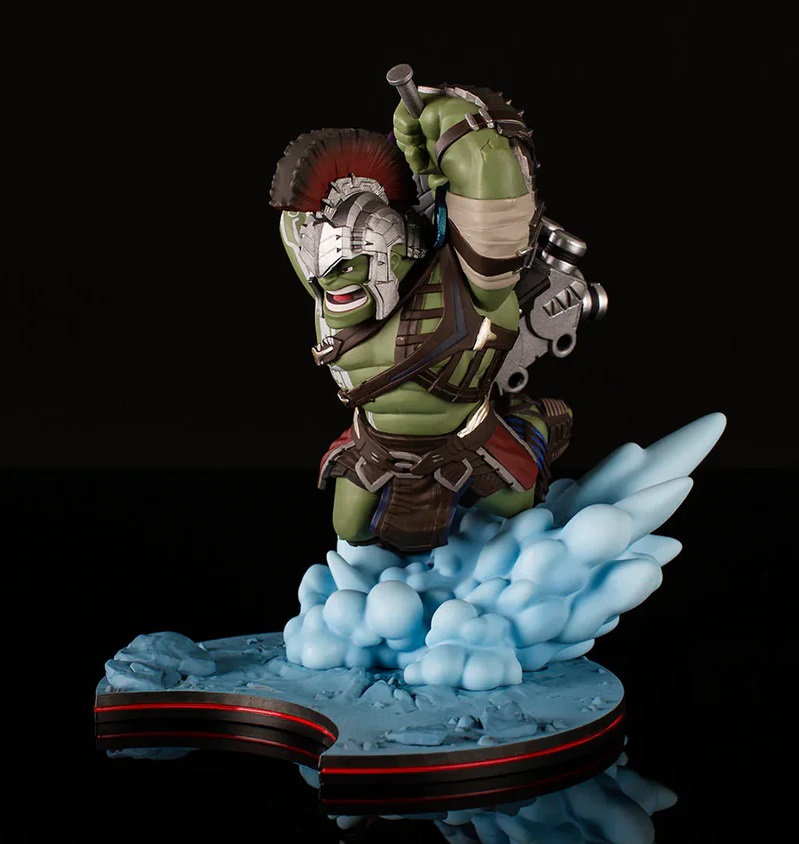 Gladiator Hulk springs into action, ready to land a crushing blow with his gigantic war hammer in Q-Fig Max diorama based on the character from the 2017 film Thor: Ragnarok.