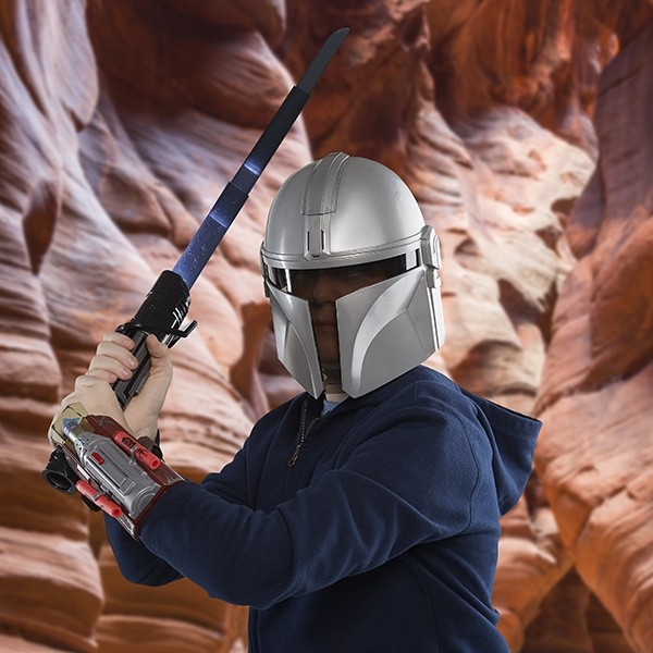 Push a button on the side of the mask for sound effects and 3 iconic phrases: this is the way. I am a Mandalorian. and I like those odds.
