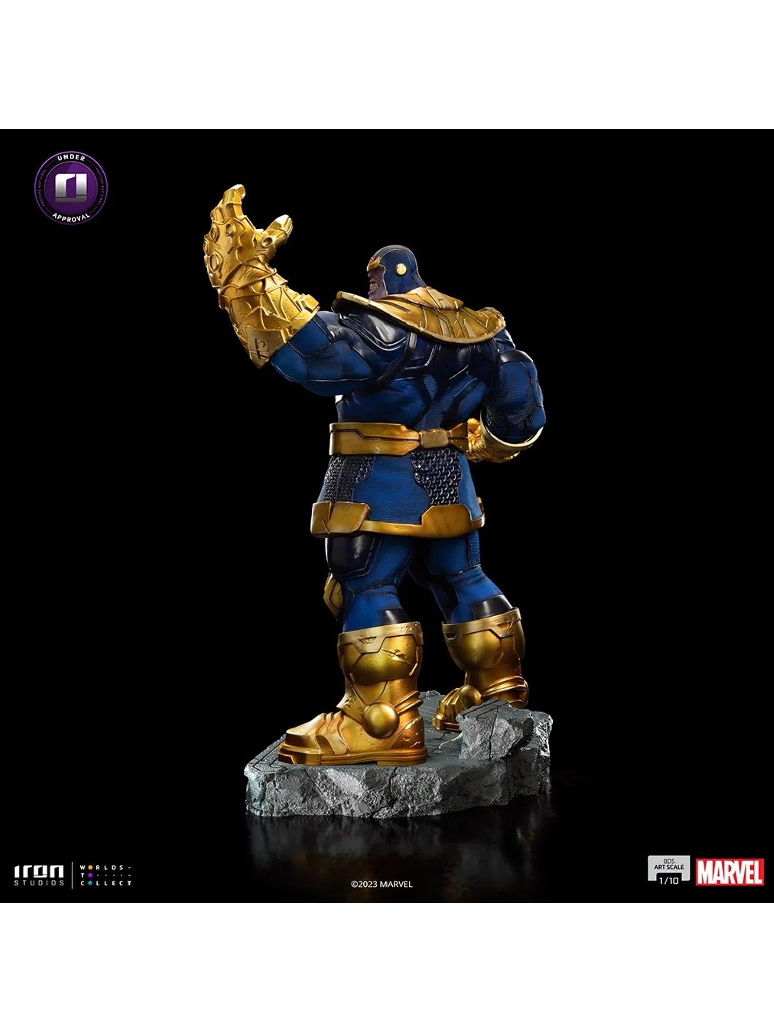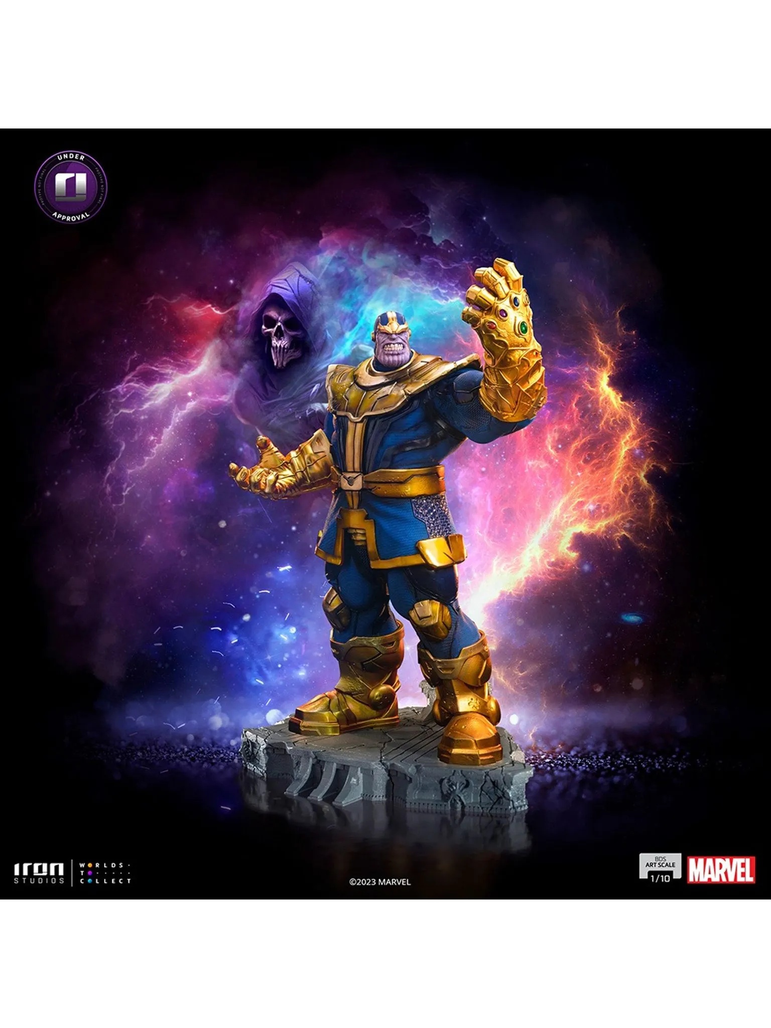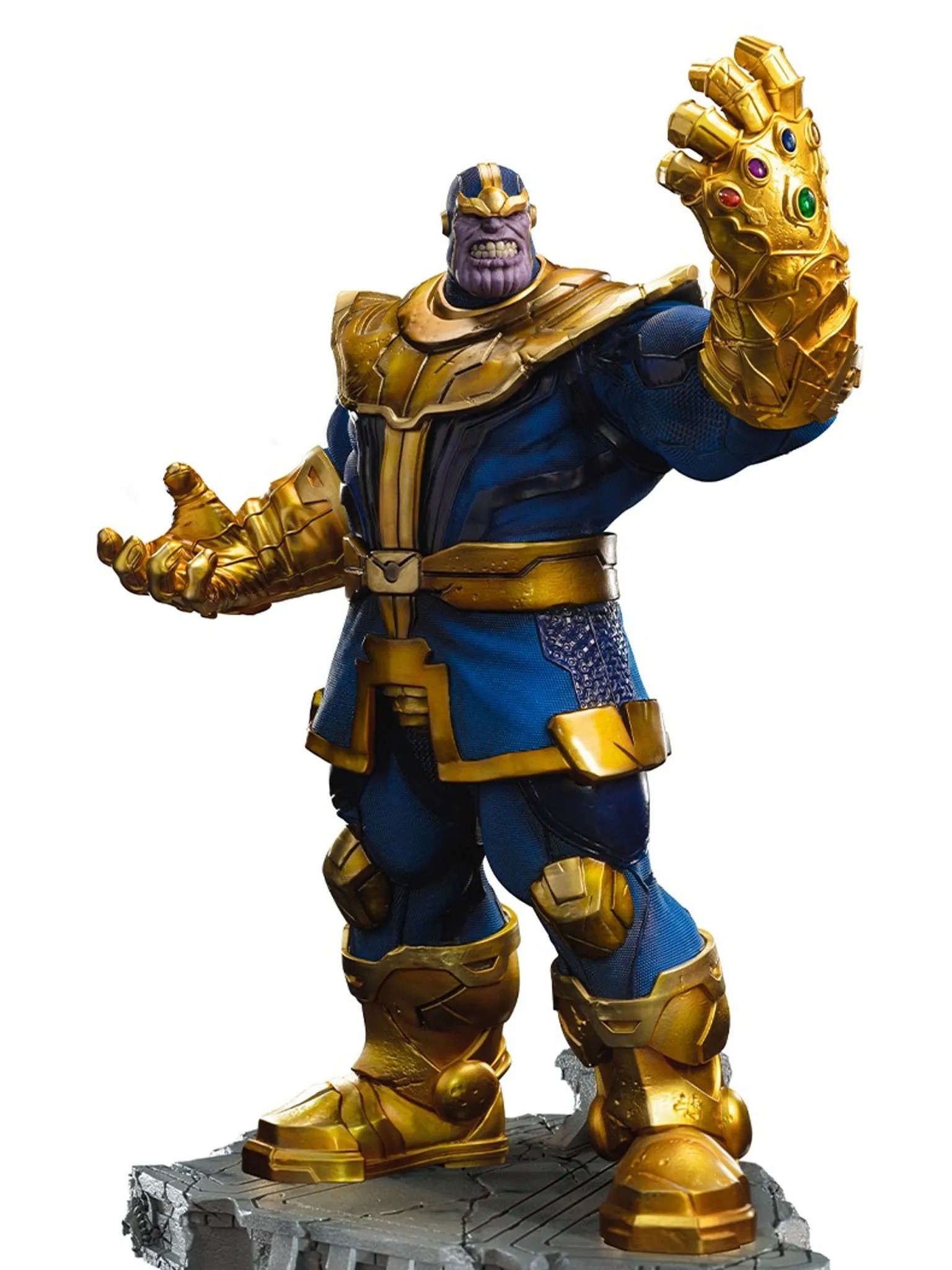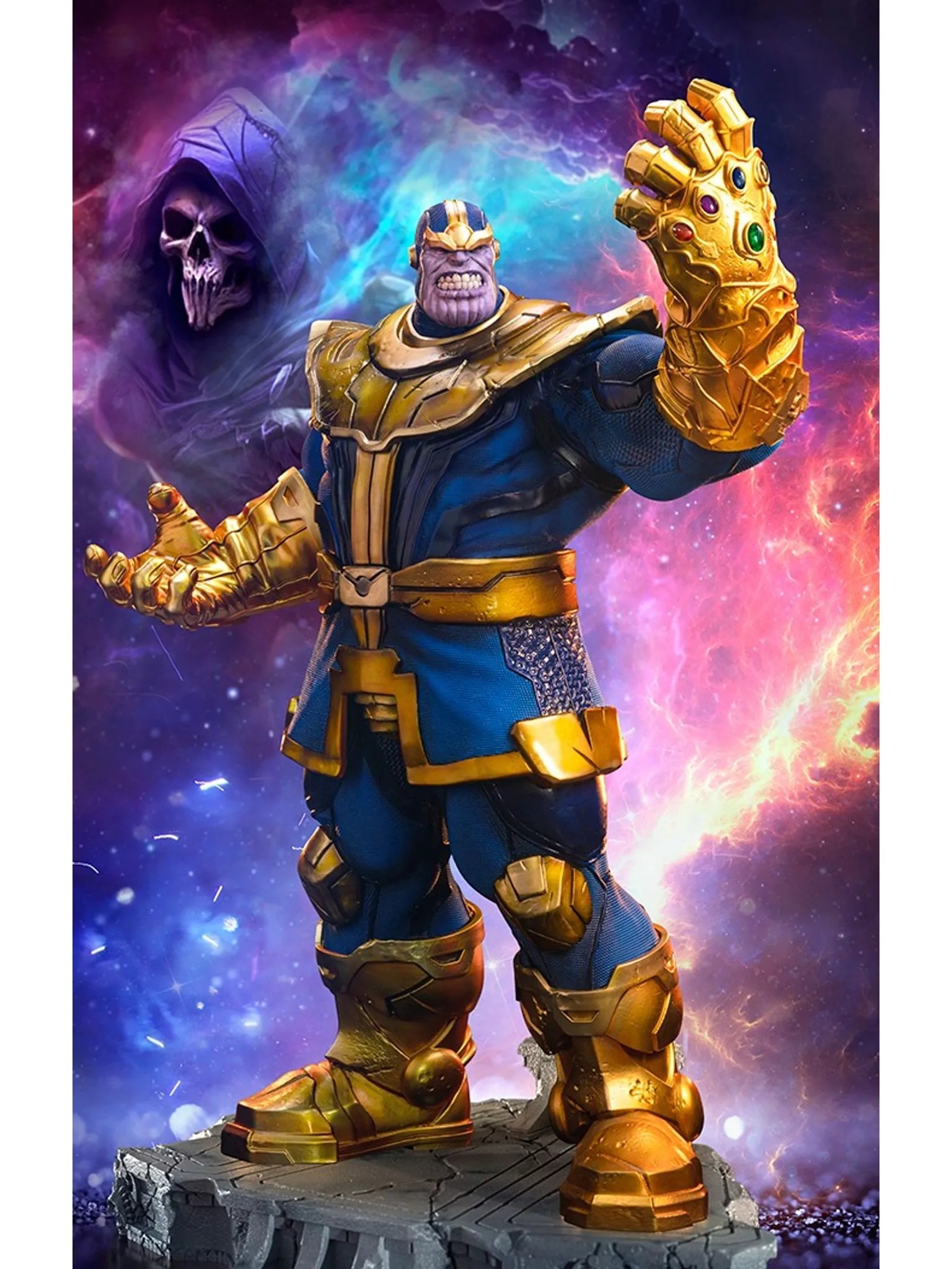 The Thanos Infinity Gauntlet statue is produced by Iron Studios, and features unique characteristics and incredible attention to detail. In the scene, Thanos raises his gloved left hand with his Infinity Gauntlet, boasting the power of a demigod with this artifact designed to store the six cosmic singularities transformed into jewels. Each one represents an aspect of the universe: space, time, mind, power, soul and reality, giving its wearer near omnipotence. The character’s armor, in shades of blue and gold, and his imposing countenance, with large teeth, capture the essence of the character with impressive realism – exactly as we see him on TV, in the movies and the comics.