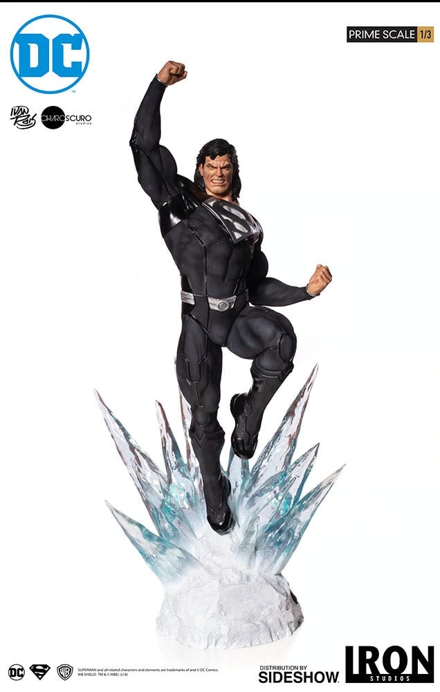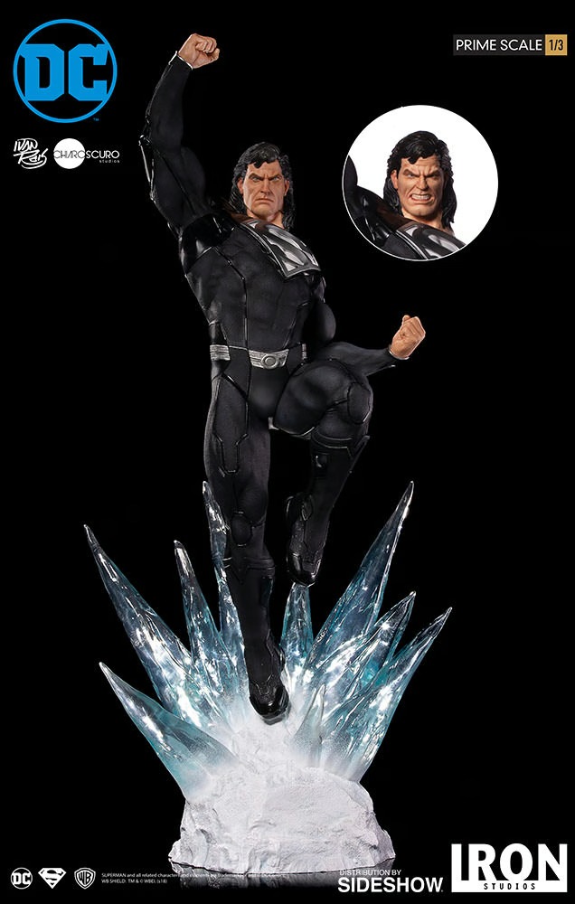 Sideshow and Iron Studios are proud to present the Superman (Black Suit) Prime Scale Statue. Based on concept art by Ivan Reis (DC Comics official artist) of Chiaroscuro Studios. This polystone statue is hand-painted and features two head options and an LED light-up base.