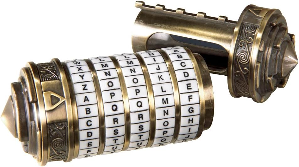 A detailed working miniature model of the Cryptex as featured in The Da Vinci Code. It opens with the password from the movie, unless you wish to change it to your own secret code.