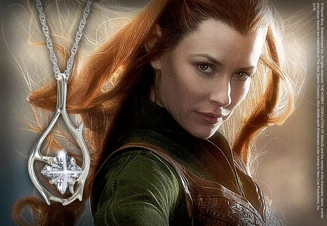 Crafted in sterling silver with a cutglass crystal measuring approx. 1cm and an 18″ sterling silver chain, this delicate pendant is a reproduction of the necklace worn by Tauriel. Comes in a collectors box.