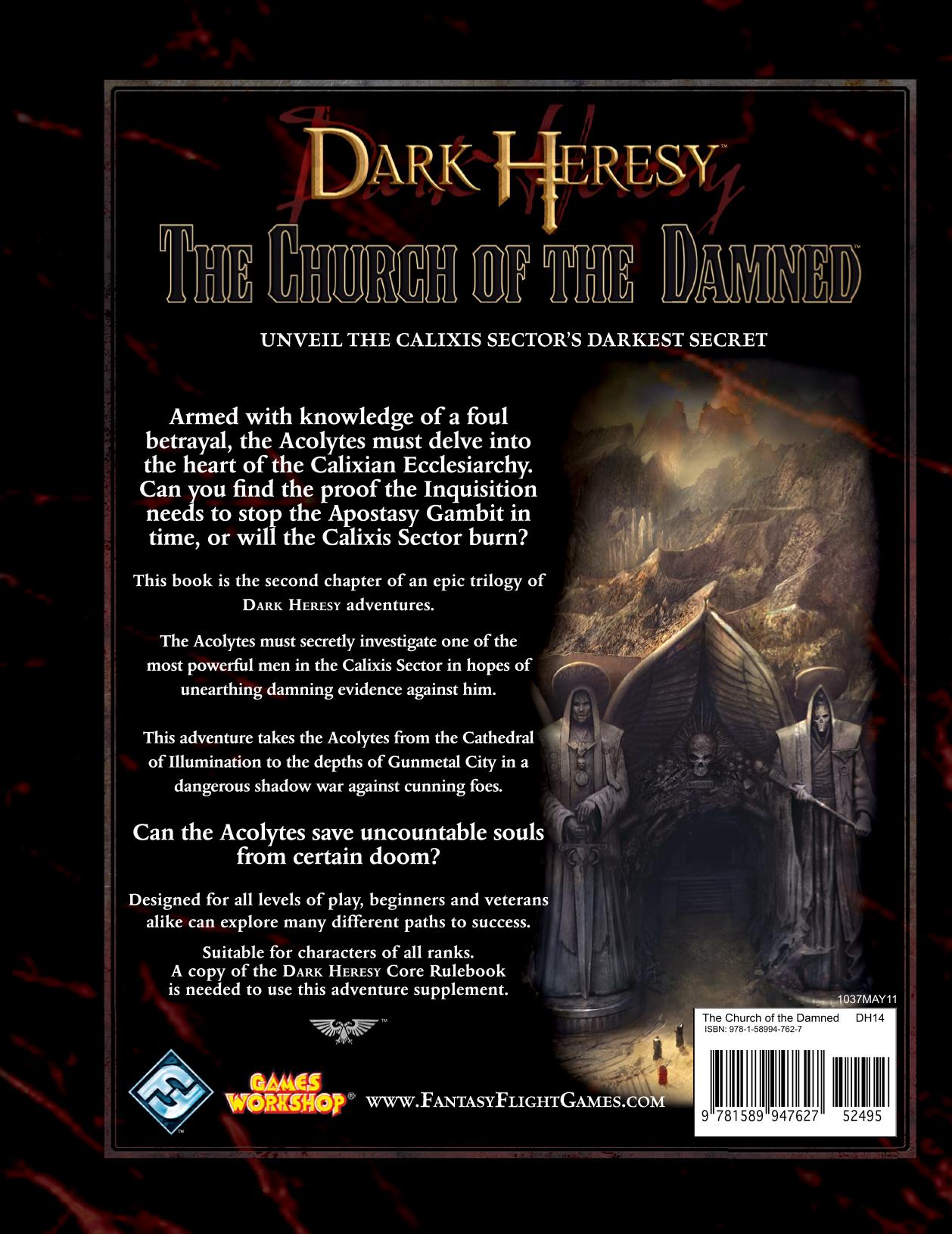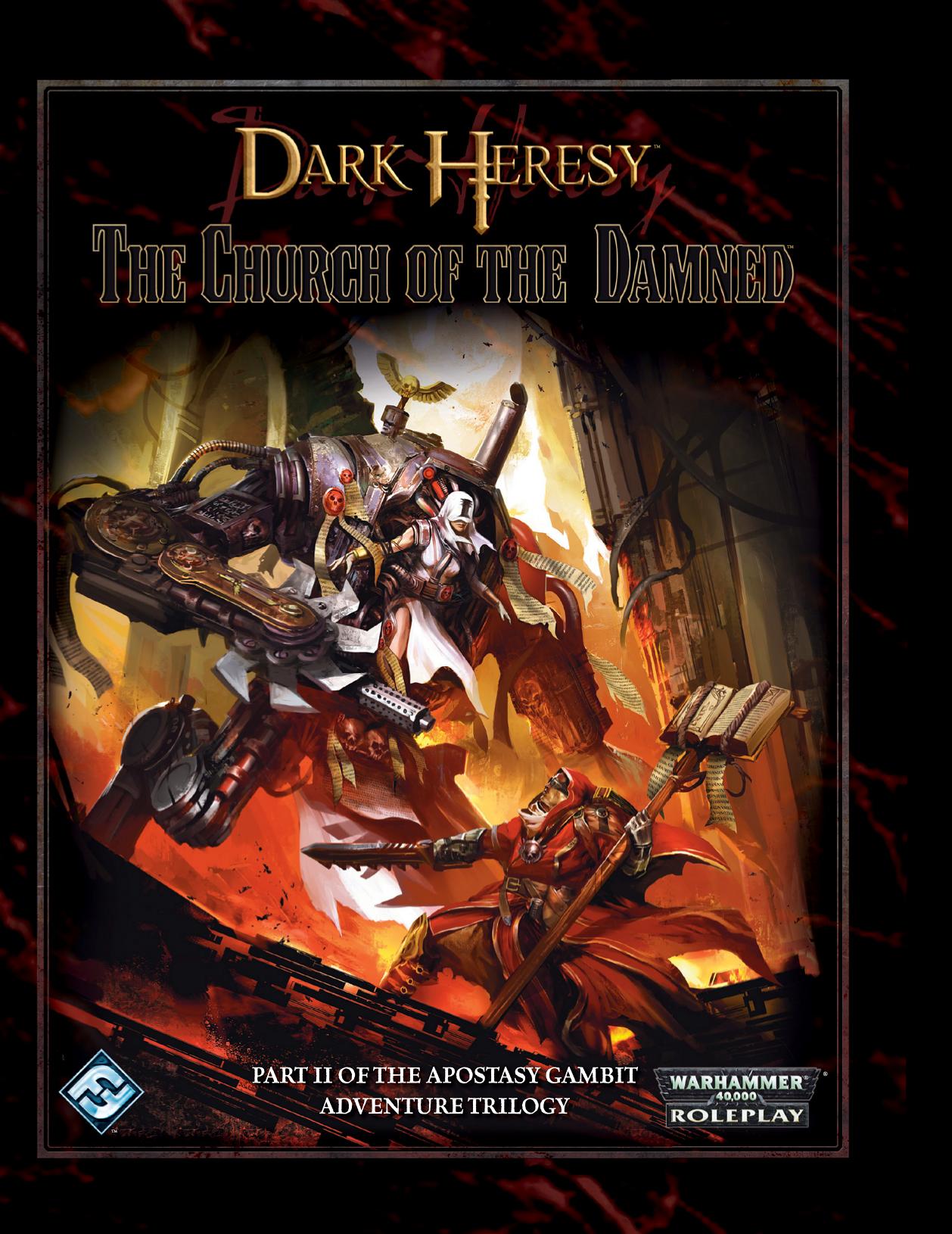 The Church of the Damned is the second adventure in The Apostasy Gambit, a Dark Heresy campaign that takes a cell of Acolytes from investigating the tragic history of a warped Cathedral to crusading against a conspiracy at the heart of one of the Imperium’s most vaunted organizations. While The Church of the Damned continues the events started in The Black Sepulchre, it also includes starting points to be played on its own or as part of a custom campaign. The Maledictor’s Hand, a secret group of fanatical extremists, manipulates the Imperium from the shadows. The Acolytes must hurry to stop this dark plot before it’s too late. But who can they trust?